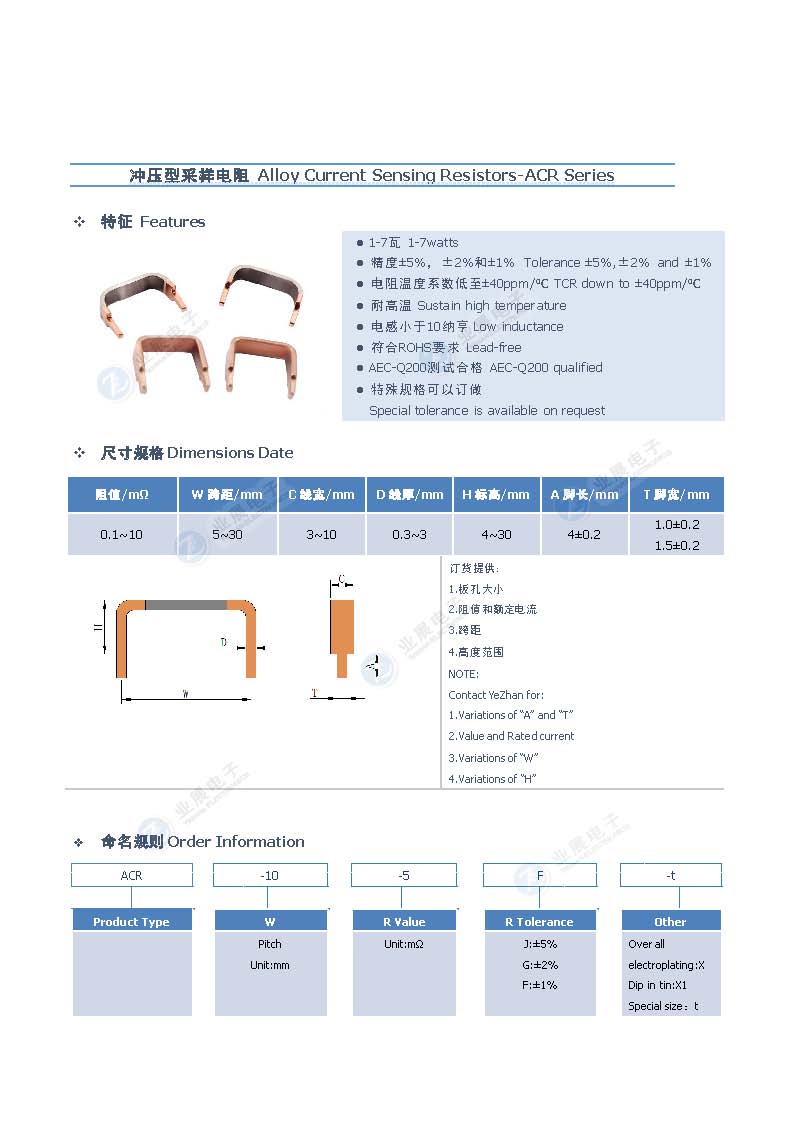 简要描述:冲压型采样电阻 Alloy Current Sensing Resistors-ACR Series
