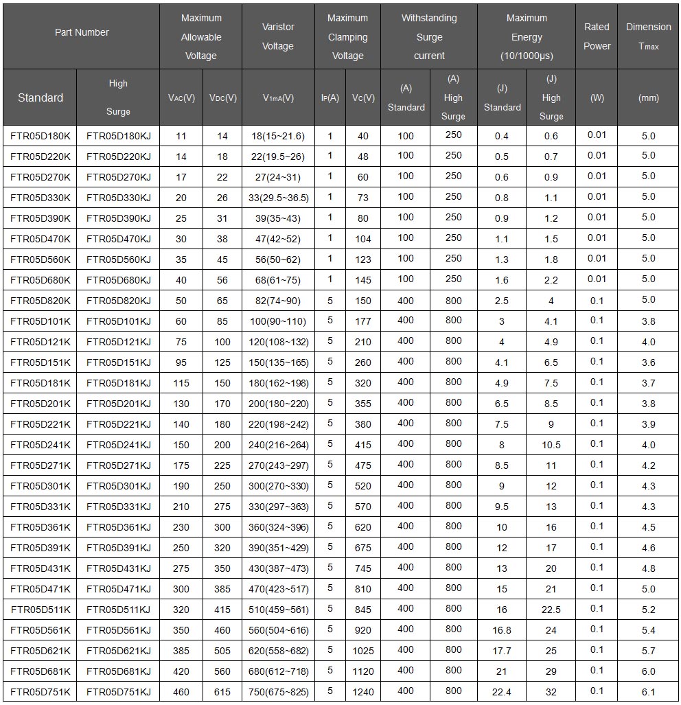 简要描述:压敏电阻 FTR05D820K 820KD05