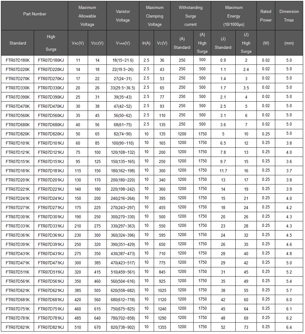 简要描述:压敏电阻 FTR07D330K 330KD07