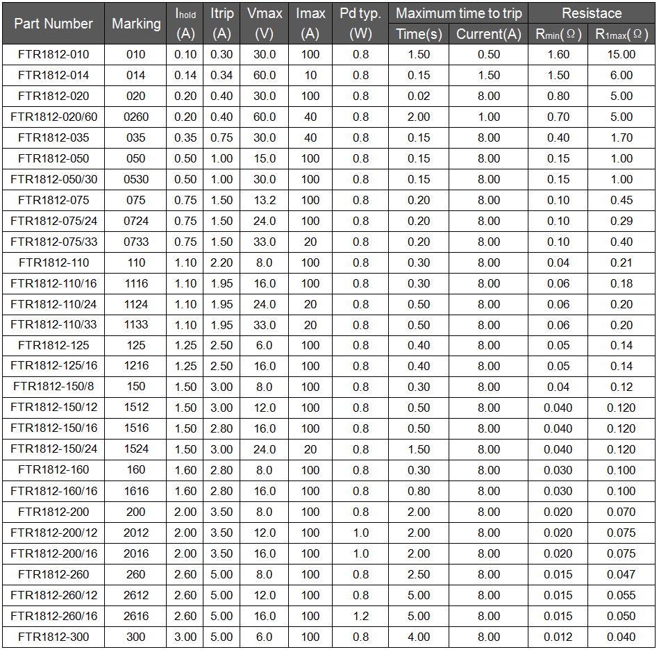 FTR1812-010 自恢复保险丝