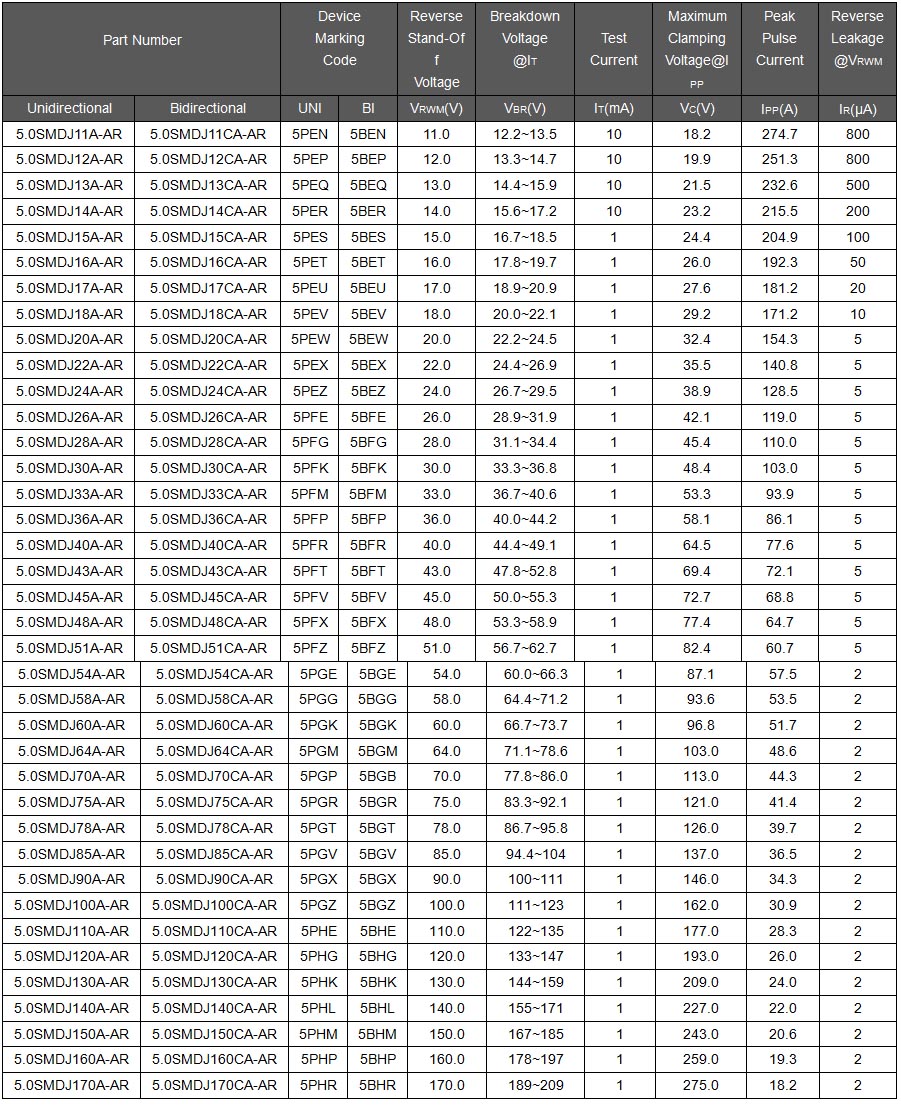 5.0SMDJ11A-AR 瞬态抑制二极管(车规级)