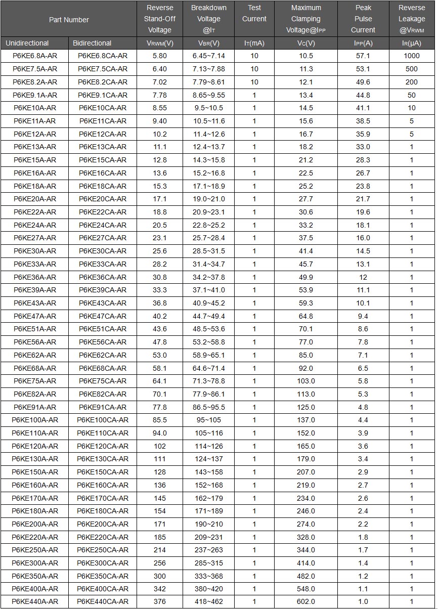 简要描述:瞬态抑制二极管(车规级)P6KE6.8A-AR