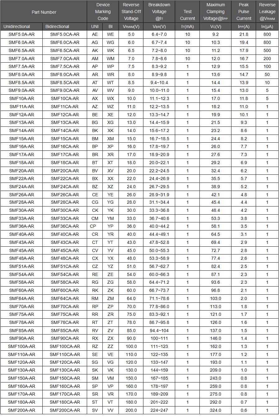 简要描述:瞬态抑制二极管(车规级)SMF5.0A-AR
