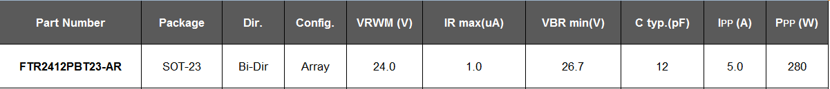 简要描述:瞬态抑制二极管(车规级)FTR2412PBT23-AR