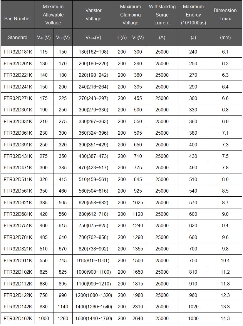 简要描述:压敏电阻 FTR32D241K 241KD32