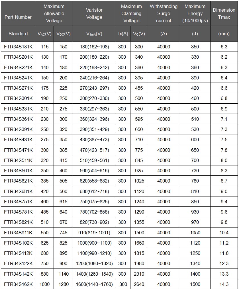 简要描述:压敏电阻 FTR34S201K 201KS34