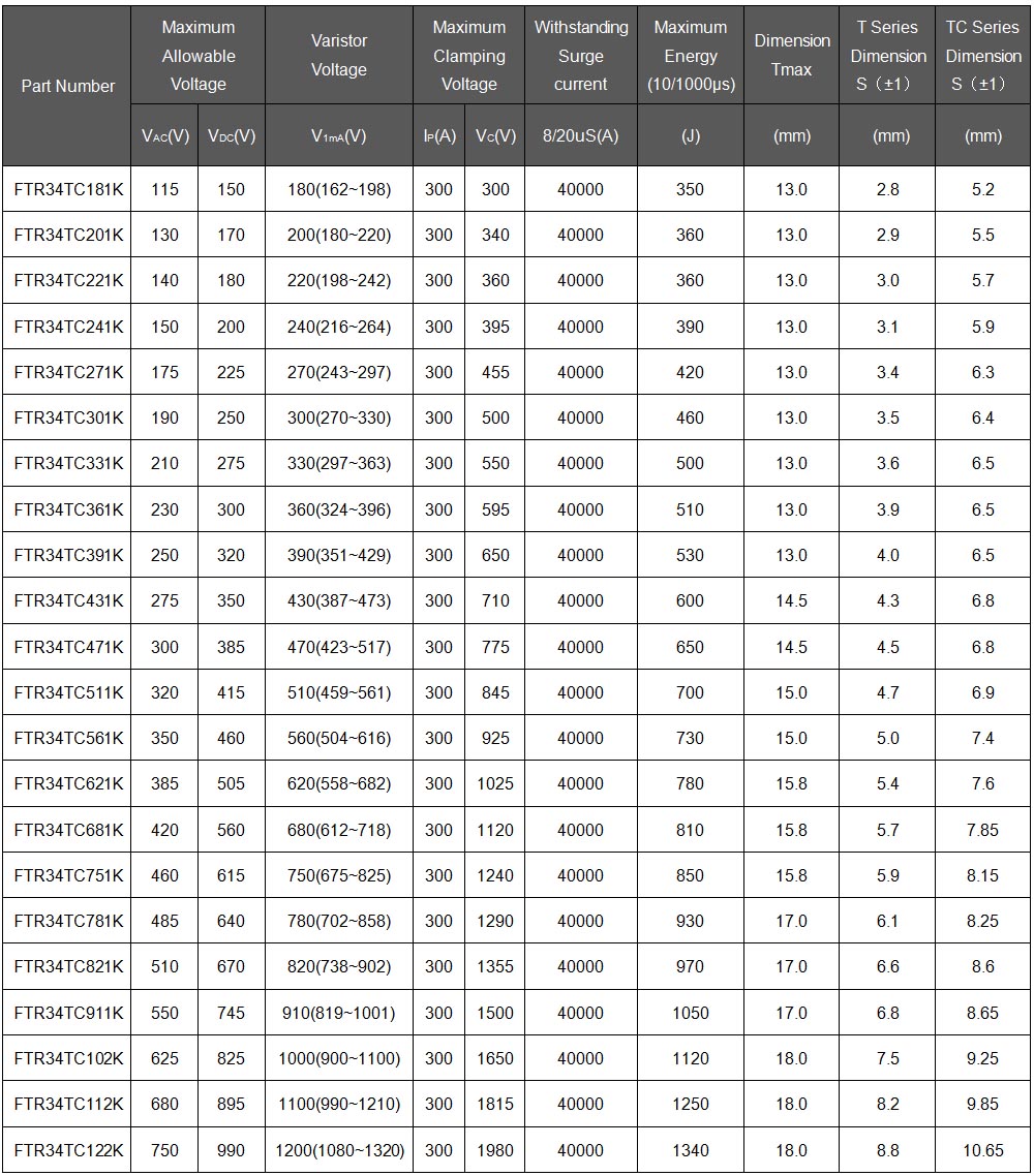 简要描述:过热保护压敏电阻 FTR34TC561K