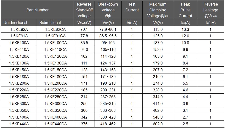 Reverse Stand-Off Voltage: 5.8 - 376V