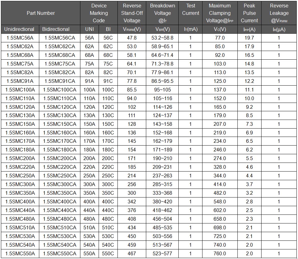 简要描述:瞬态抑制二极管 1.5SMC8.2A