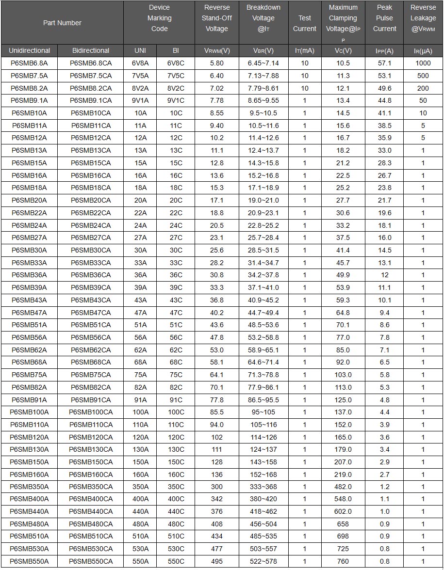 Reverse Stand-Off Voltage: 5.8 - 495V