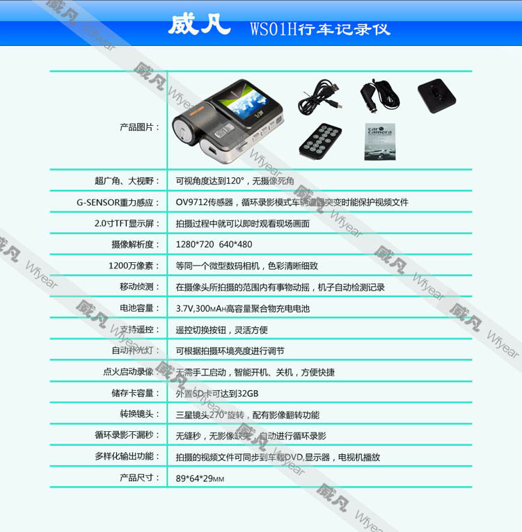 简要描述:高清 广角 夜视 行车记录仪 车载摄像机