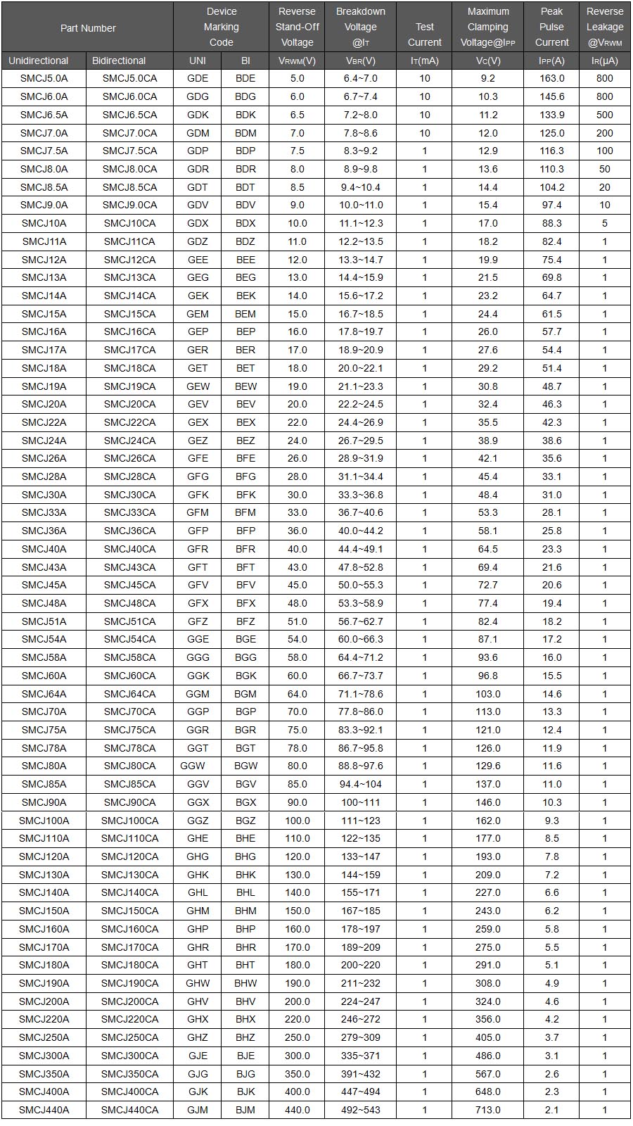 Reverse Stand-Off Voltage: 5.0 - 440V