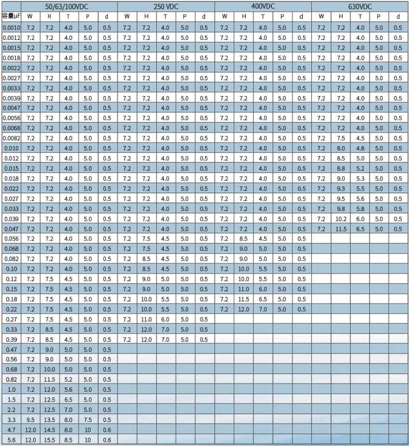 体积超小,自愈性好,耐高温,部分小容量可用串联金属化膜生产,耐压高,