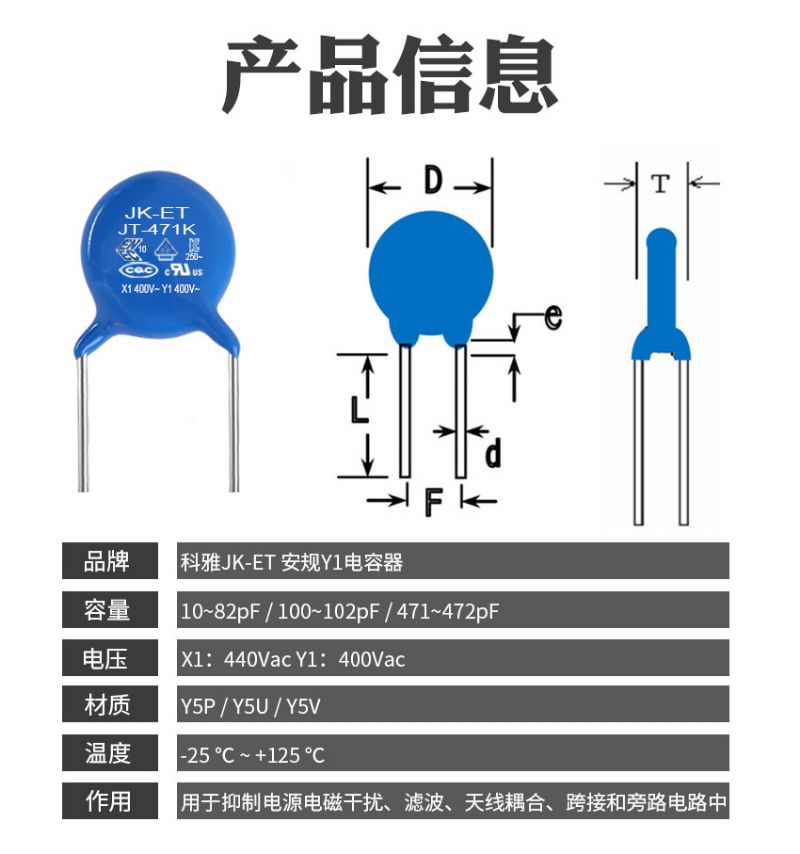 具有高介电系数的陶瓷介质和阻燃的环氧树脂封装,应用于抑制电源电磁干扰、滤波、天线耦合、跨接和旁路电路中。